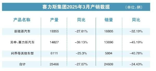 但进入2025年后,问界的月销量持续下滑。4月1日,各车企陆续晒出3月销量成绩单,但鸿蒙智行、赛力斯及问界均未在当日发布销量数据。此后,北京商报记者在赛力斯发布的产销快报公告中看到,2025年一季度赛力斯汽车销量超4.5万辆,同比下滑46.31%。其中,3月销量约1.37万辆,同比下滑45.19%。2025年3月新造车月销排行榜显示,零跑汽车最终以3.7万辆再次反超理想汽车夺得月度销冠,理想汽车以超3.6万辆的销量成绩排名第二位,问界则被挤出第一梯队。